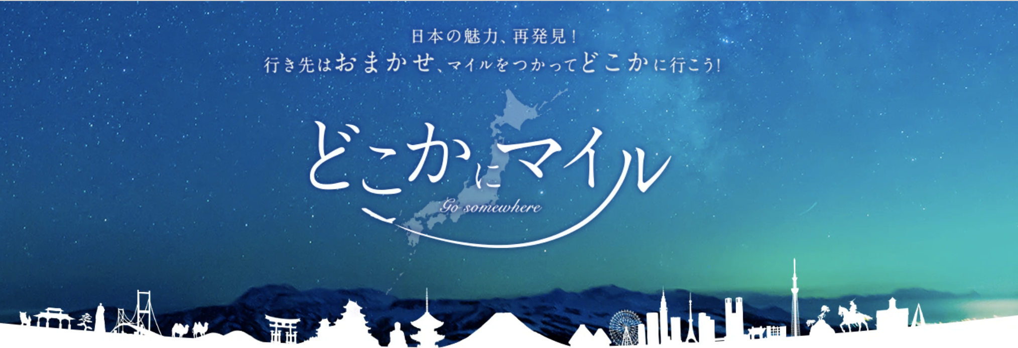 年に1回、国内線往復特典航空券「どこかにマイル」をなんと!1,500マイルで利用できる。(通常7,000マイル必要)